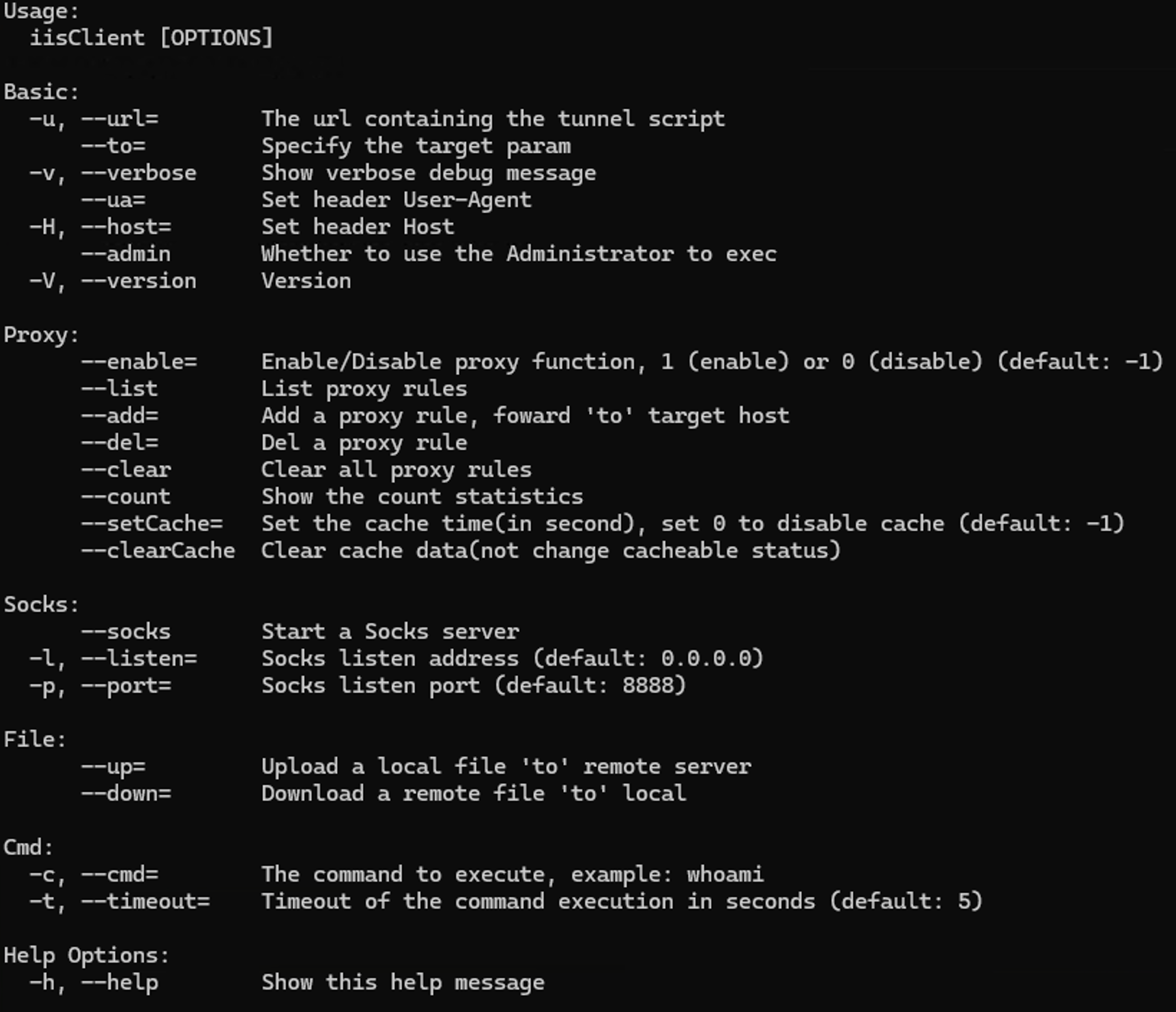 Upon investigating reGeorgGo, We found that it was developed by a Chinese security engineer. There is no other information about this project on the internet, aside from the developer’s blog. It was a not well-known tool. However, the publicly available reGeorgGo is a tool with only three arguments, where as IceCache has more commands added to it.
