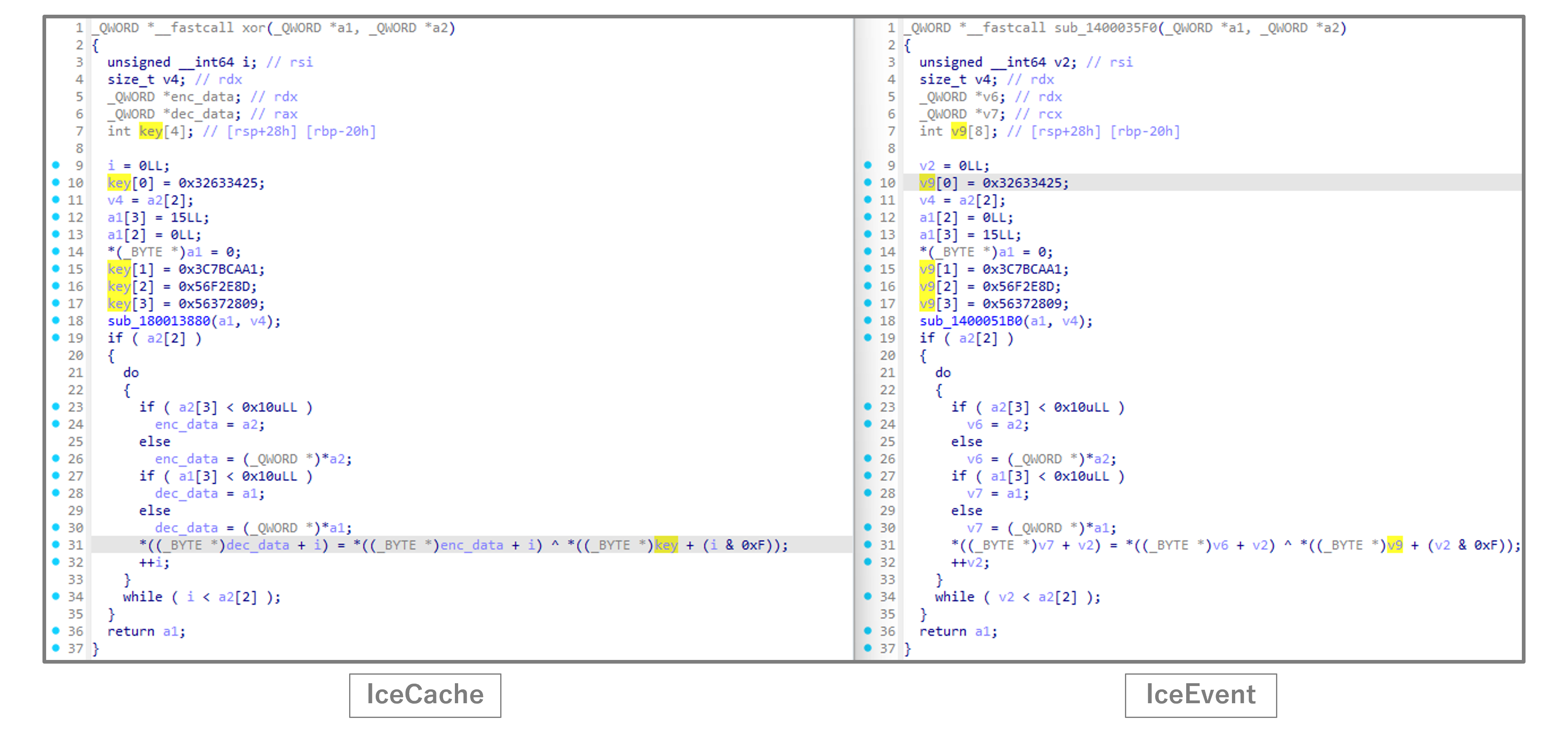 We believe that IceEvent was developed because a simple passive backdoor was needed during intrusions, based on code similarities with IceCache. Both IceCache and IceEvent use the same key for XOR to encode communication data. And PDB information shows that the same developer created both malware.