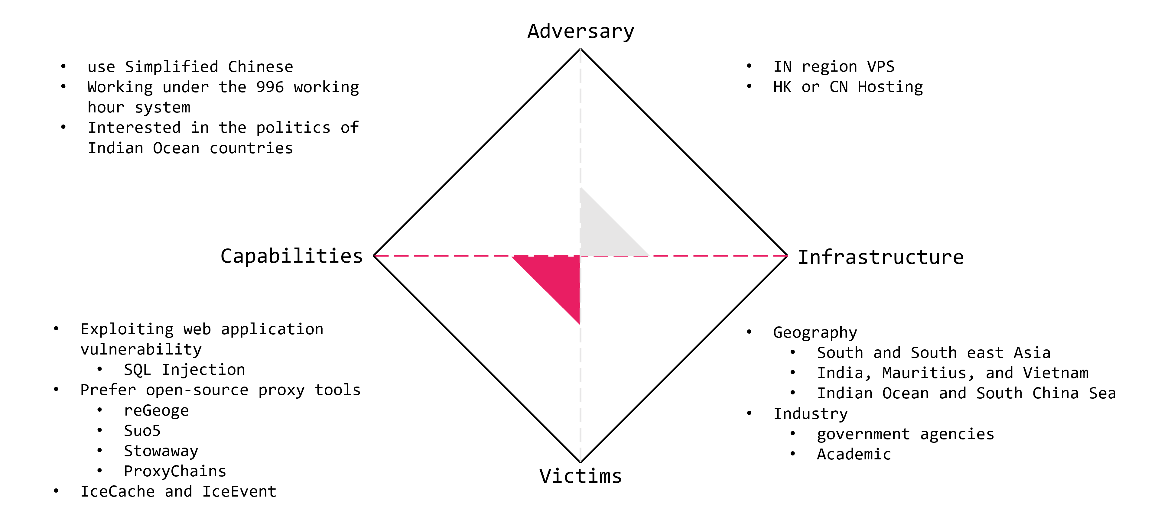 IcePeony consists of Simplified Chinese speakers who show interest in the governments of Indian Ocean countries and work under the 996 working hour system.