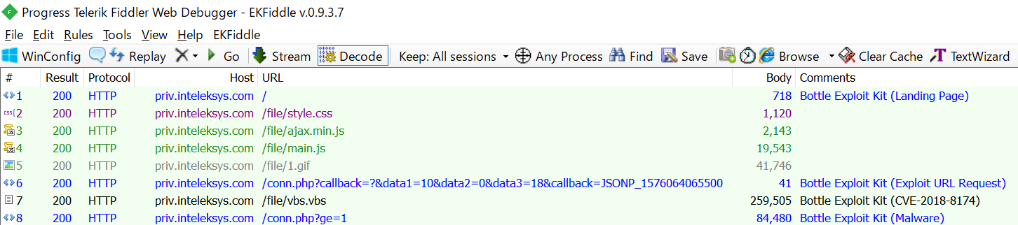 On December 11, 2019, we were strolling through ad-networks. As before, we observed RIG, Fallout and Underminer Exploit Kit, but observed other interesting Drive-by Download attack. We call it “Bottle Exploit Kit”. BottleEK targets only Japanese users. According to our research, BottleEK has been active at least in September 2019. This time we introduce BottleEK.