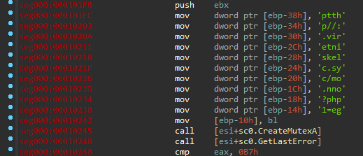 The shellcode downloads and executes malware just like other EKs. The malware is not encrypted.