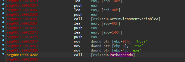 The malware is created as svchost.exe in% temp% and then executed with the WinExe function.